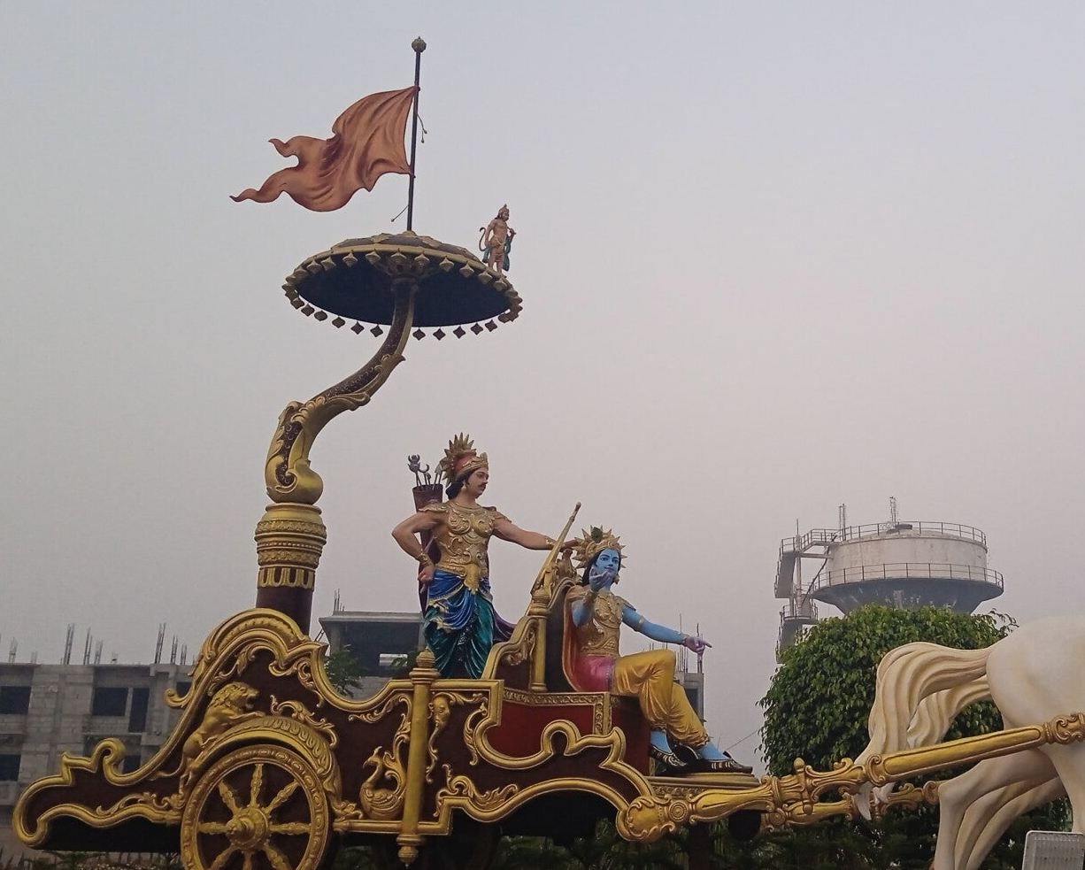 Vivre selon le dharma exige un travail spirituel constant. La Bhagavad Gītā, texte fondamental de l'hindouisme (équivalent aux Évangiles chrétiens), l'illustre puissamment à travers le dialogue entre Krishna et le guerrier Arjuna sur un champ de bataille. Arjuna hésite à combattre car cela implique d'affronter des proches. Krishna lui rappelle : "Mieux vaut accomplir son propre dharma, même imparfaitement, que celui d'un autre, même parfaitement" (3.35).